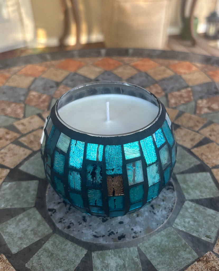 Blue/Amber Mosaic Glass Soy Candle